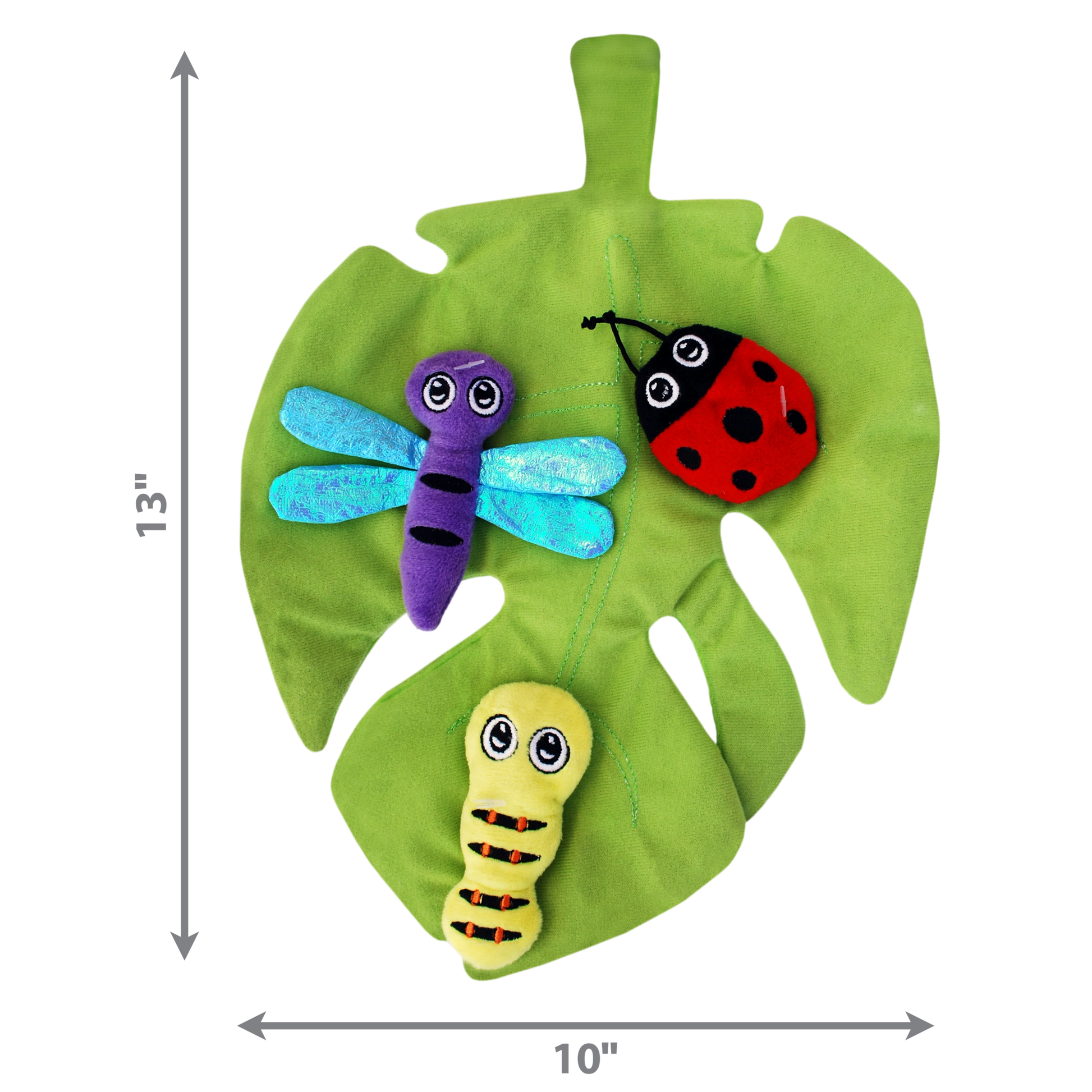 KONG Pull-A-Partz Bugz provides a playground of fun by featuring 4-toys-in 1 that provide an endless variety of play while encouraging a cat’s natural instincts. The pull-apart, catnip stuffed toys entice stalk & grab play, while being lightweight enough to engage batting and pouncing play. The crackle filled leaf base provides an ideal outlet for hind paw kicking while being filled with sounds that extend the fun and create a multi-sensory play-filled experience.