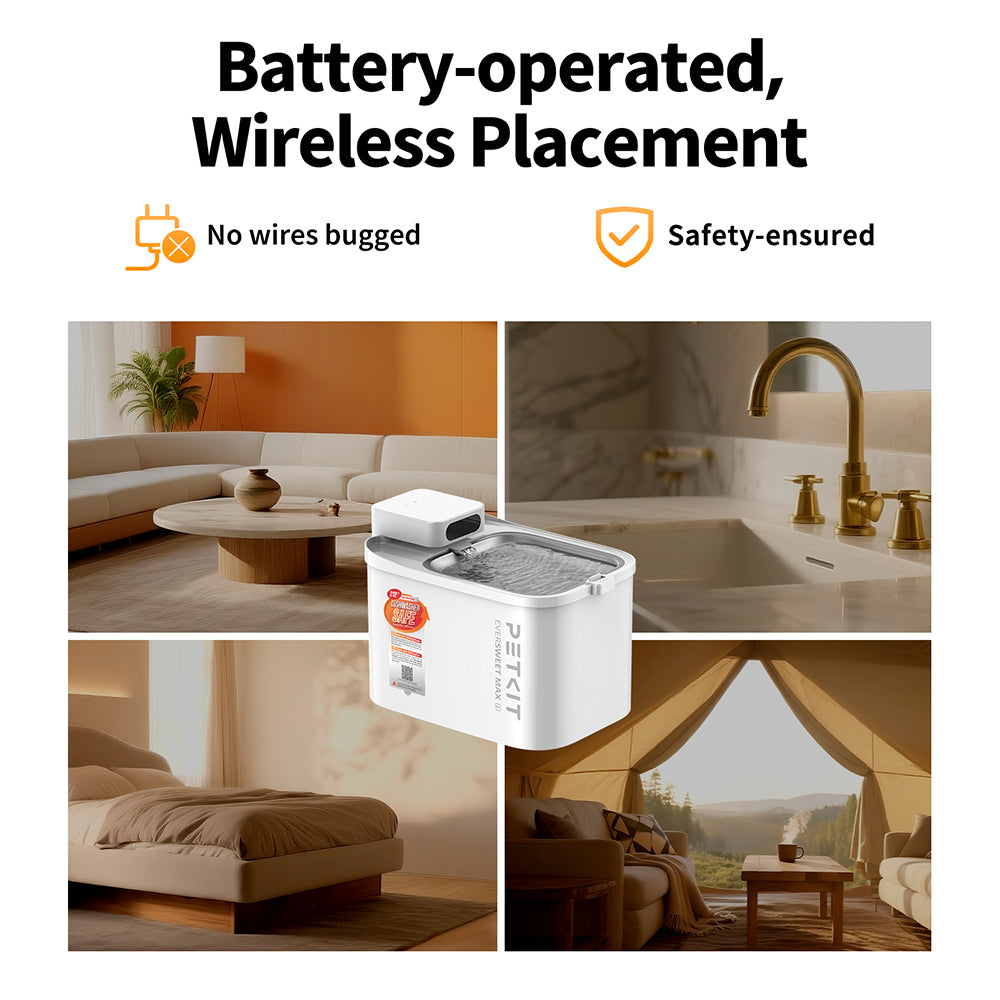 - App Monitoring & Alerts — Via the PETKIT App, you can track your pet’s drinking habits (frequency, duration), and receive alerts for low water level, filter replacement, or low battery.